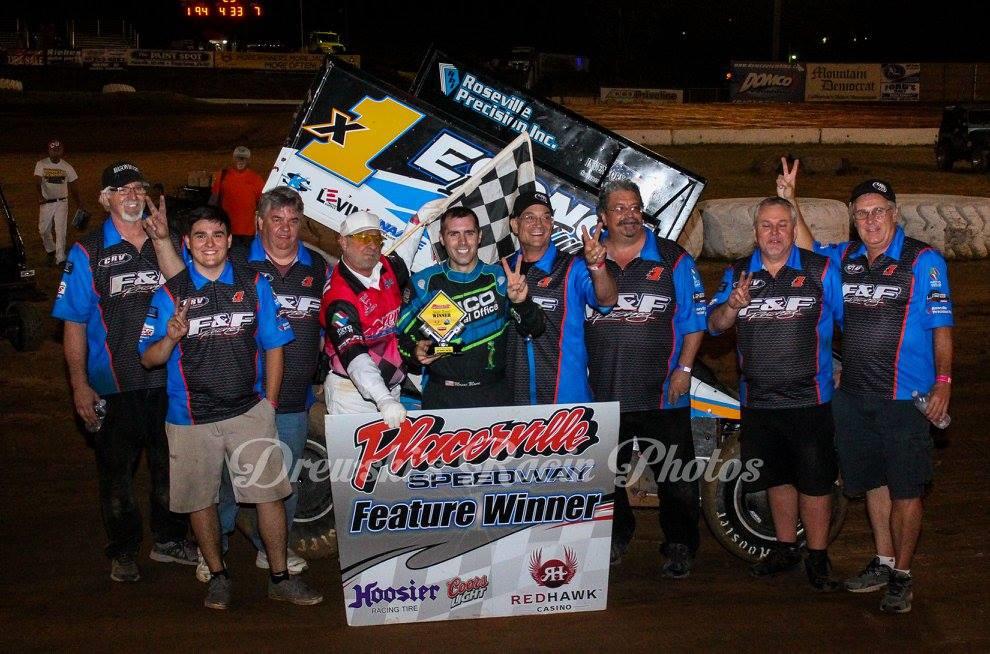 Despite two weeks off, Princeton California’s Mason Moore continued his hot streak at Placerville Speedway in the 360 Sprint Car division. Heading into the night, Moore had yet to finish outside the top five in the previous five events and on Saturday night he continued to be the cream of the crop aboard his F & F Auto Racing number X1 EAGLE. With the victory, Moore extended his already commanding point lead to 61 over defending track champion Greg Decaires, a fellow EAGLE driver who finished 3rd after each driver claimed heat race wins.