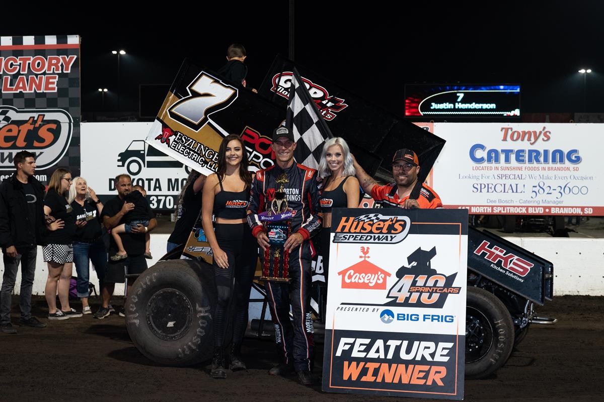 Inside Line Promotions – BRANDON, S.D. (July 14, 2021) – Justin Henderson continued his winning ways behind the wheel of the Mike Sandvig owned No. 7 Sunday night for his third win of the season at Huset’s Speedway and fourth overall.