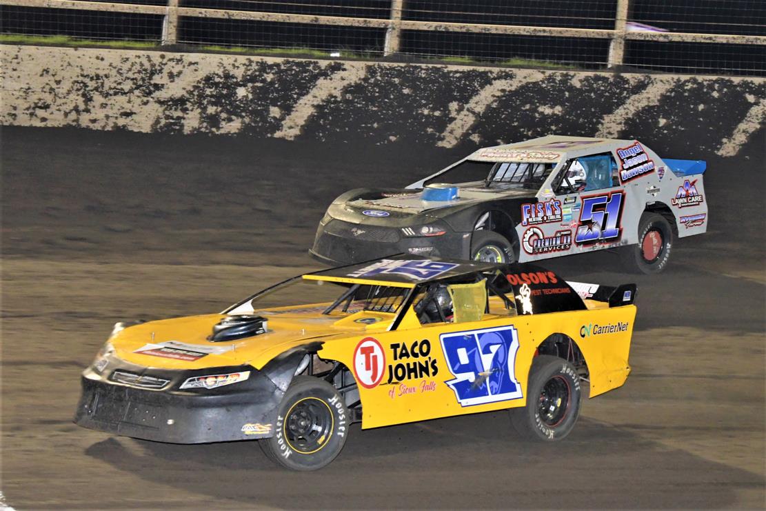 Inside Line Promotions – BRANDON, S.D. (July 19, 2021) – All three championship battles at Huset’s Speedway are within 25 points heading into Nordstrom’s Automotive Night this Sunday.
