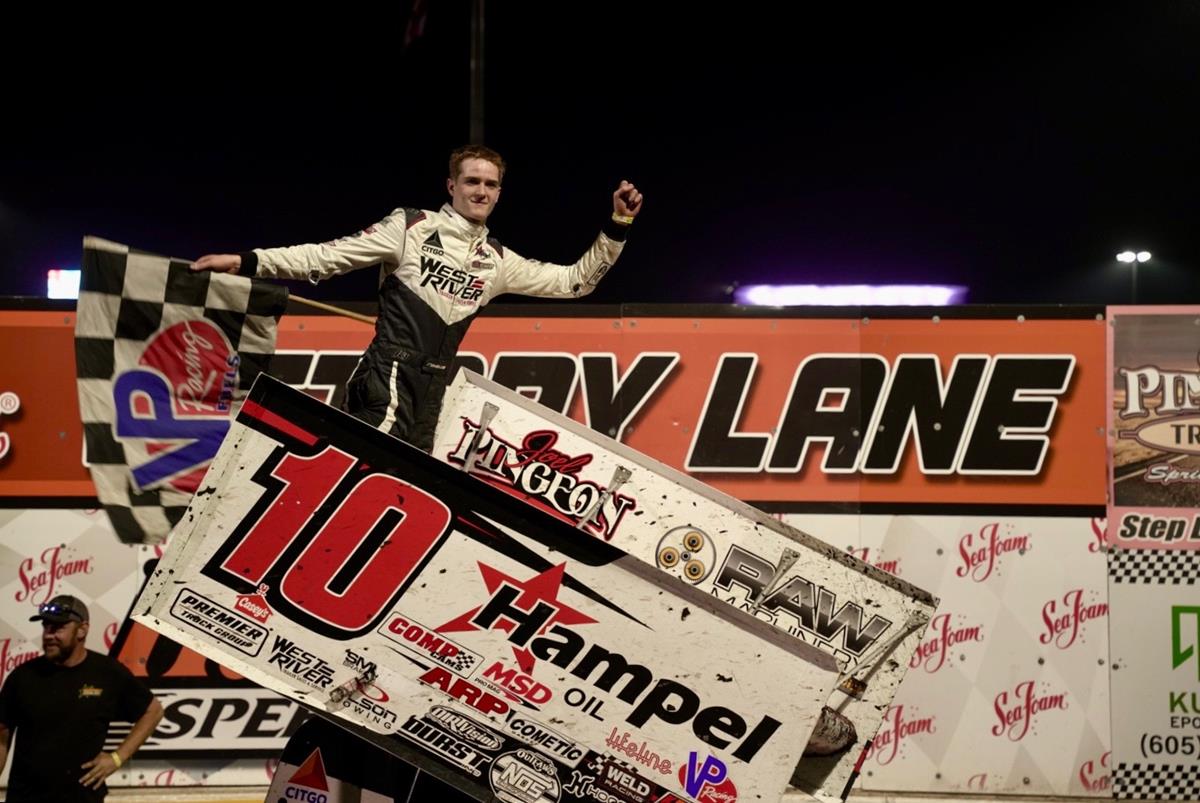 “Any time you win one race it’s awesome let alone three in the same weekend,” said Timms, who was also victorious on Friday and Saturday at Knoxville Raceway in Knoxville, Iowa. “I’m just really happy we were able to get that one out of the way. I feel like I improve a lot every time we hit the track. It’s awesome winning. It’s great winning. I’m super excited and hopefully we can keep going.”